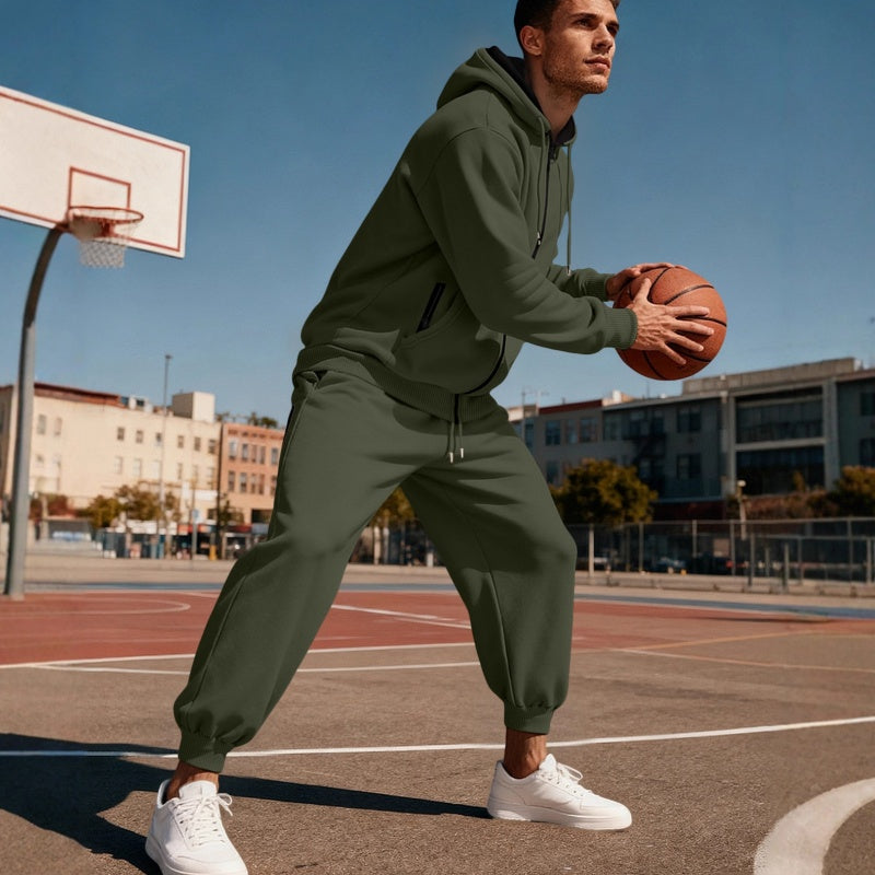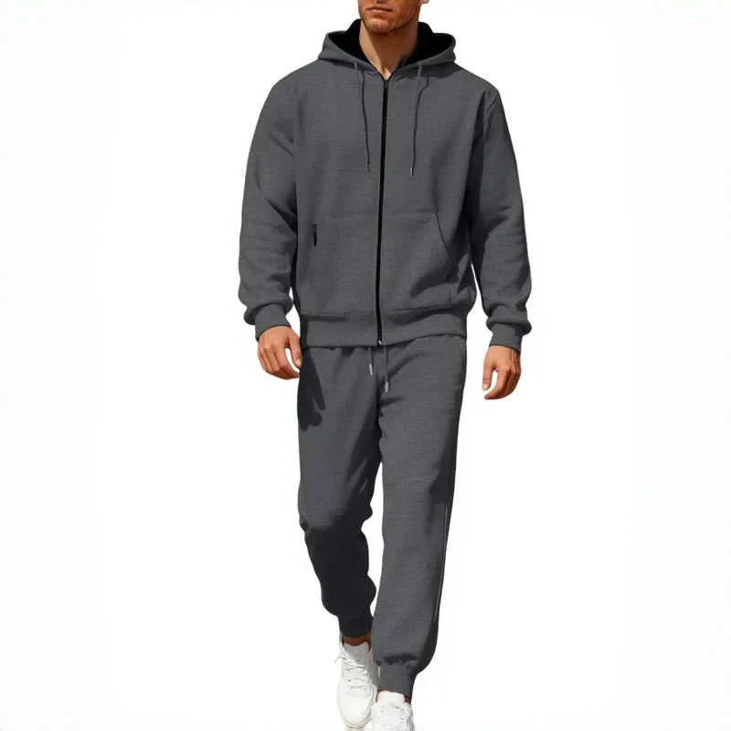 2-teiliges Set aus warmer Kapuzenjacke mit Reißverschluss und Hose für Herren🔥Kostenloser Versand🔥