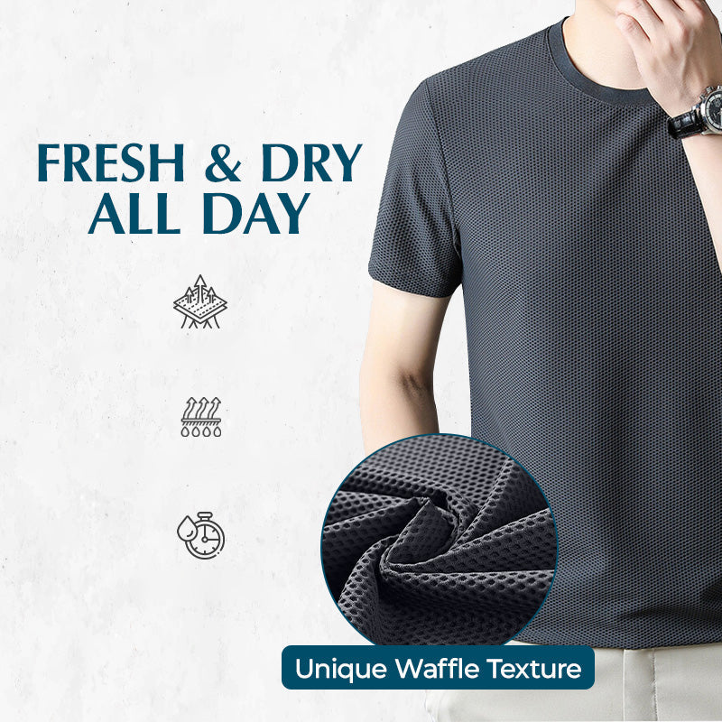 🔥Atmungsaktives, einfarbiges T-Shirt mit kurzen Ärmeln und Waffelmuster