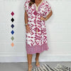 💞Was soll ich morgen anziehen?🌞Bedrucktes Freizeitkleid mit V-Ausschnitt und Fransen an den kurzen Ärmeln
