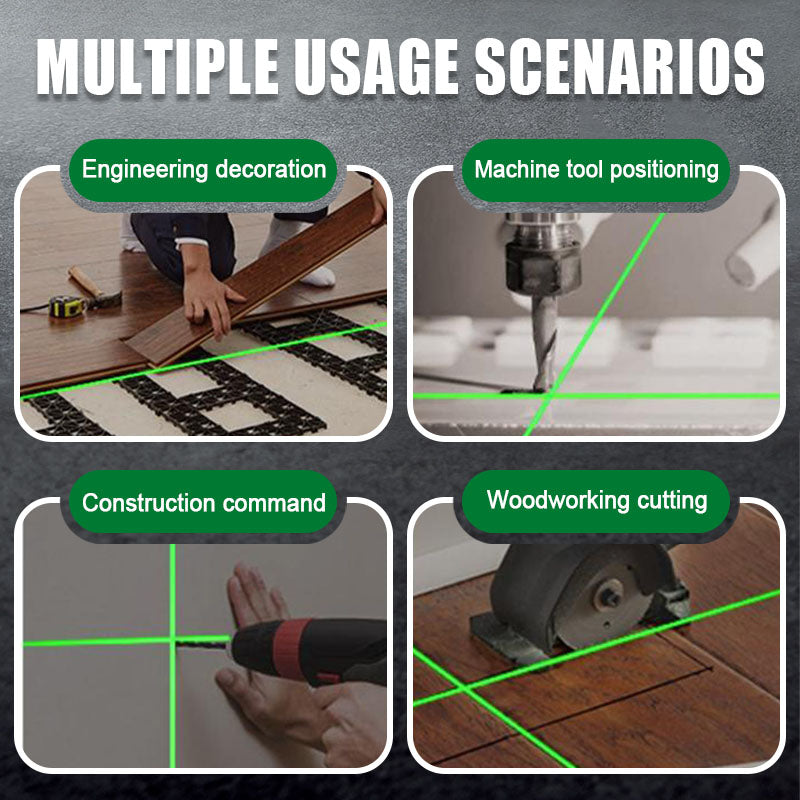 MULTIFUNKTIONS-LASERMODI : Das verbesserte Modell verfügt über einen präzisen grünen Laser mit umschaltbaren Punkt-/Fadenkreuzmustern für präzises Zielen. Standardmodelle bieten violette, rote und grüne Laser mit jeweils fünf Musteroptionen (Punkte, Kreise, Gitter usw.) für vielseitige Markierungsanwendungen.