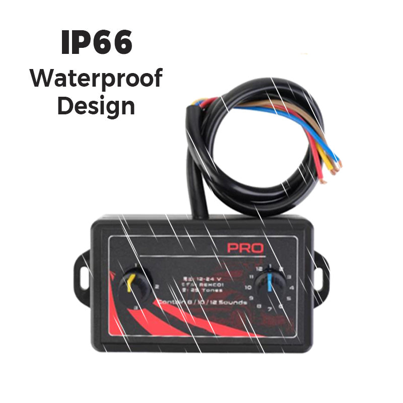 DUAL-KNOB-PRÄZISIONSTUNING- Ausgestattet mit zwei unabhängigen Reglern - einer zur Einstellung der Klanggeschwindigkeit, der andere für den Rhythmus - ermöglicht eine präzise Anpassung der Huptöne an jedes Fahrszenario.