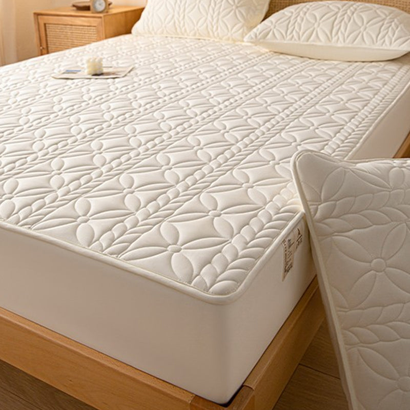 TPU WATERPROOF BARRIER - Features an advanced TPU backing that provides complete protection against spills, sweat, and liquids, preserving your mattress's lifespan and ensuring a consistently hygienic sleeping surface.