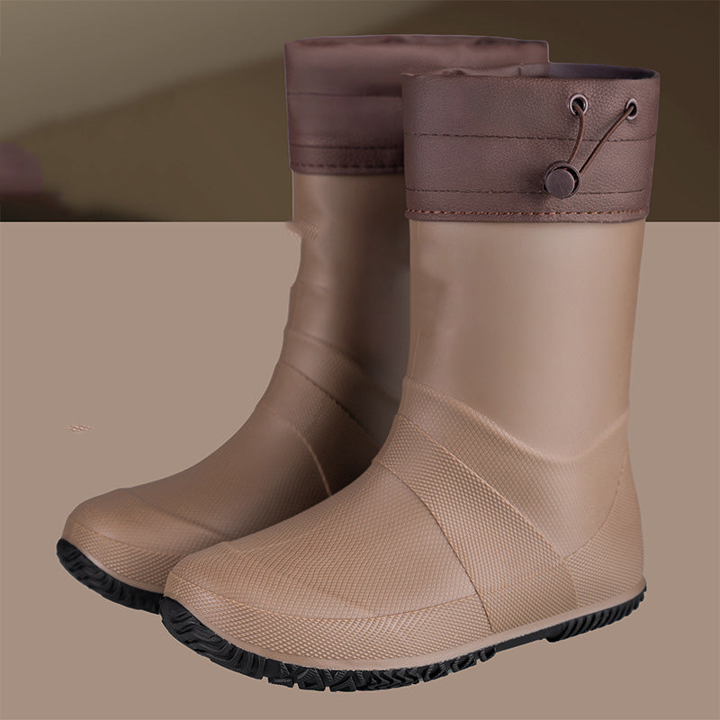 ADJUSTABLE ELASTIC CUFF - The elastic top with a drawstring allows for a snug and secure fit around your calf. This effectively prevents water, mud, and other debris from getting inside your boots.