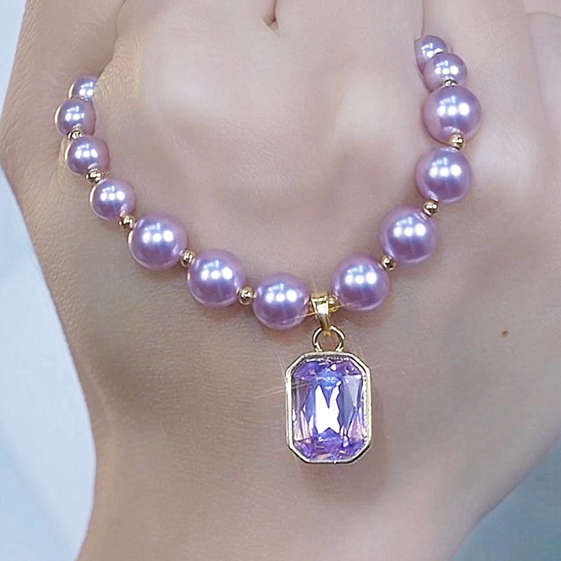 💜Elegant Purple Imitation Pearls Necklace with Pendant